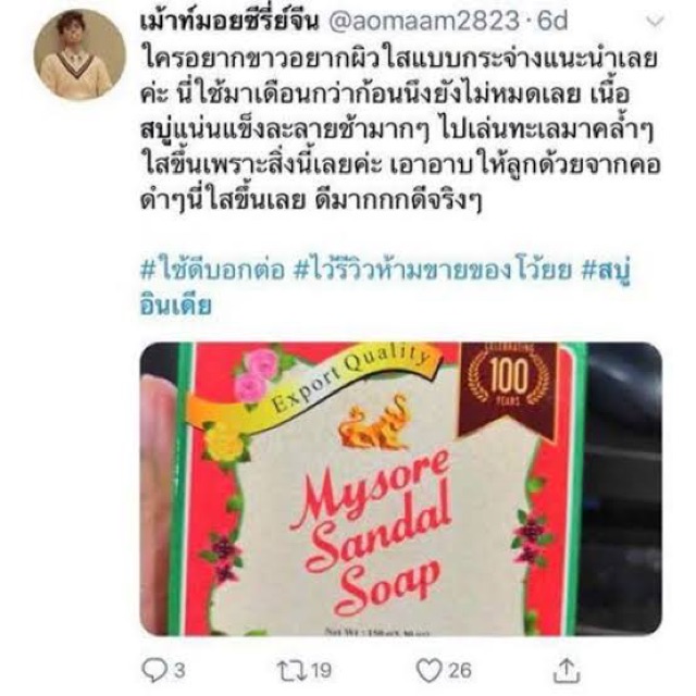อาบผิวหอม ลดกลิ่นตัว สบู่หอมแก่นจันทน์ Mysore Sandal Soap 75g, 125,g 150g