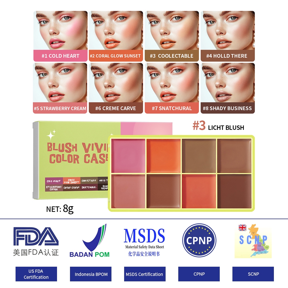 Lakerain Blush Vivid Color Case Blush Palette ไฮไลท์ Contouring Palette แต่งหน้า Face Brighten Contour Blush กันน้ํา Shimmer Powder Body Illuminator เครื่องสําอาง