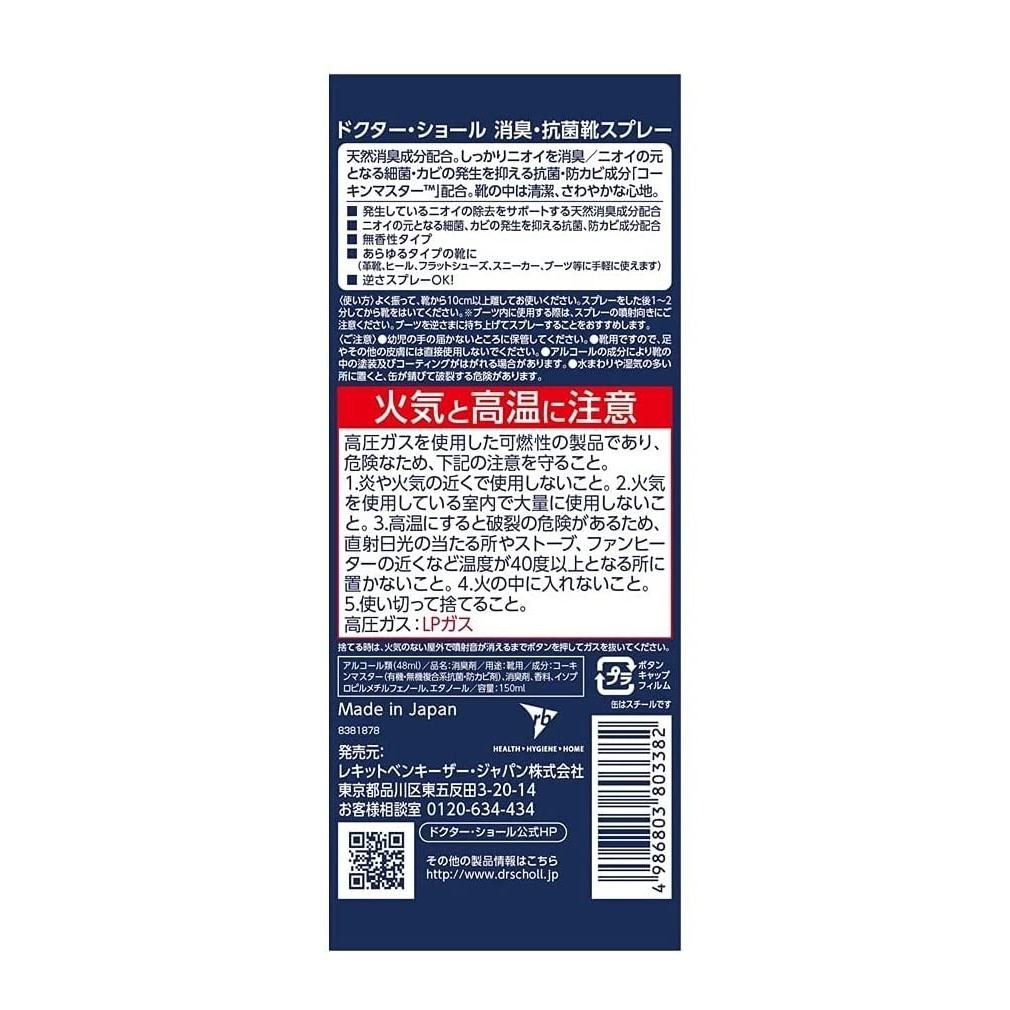 [3 of set] Dr.Scholl สเปรย์รองเท้ากำจัดกลิ่นและต้านเชื้อแบคทีเรีย ไม่มีน้ำหอม 150ml Japan shoe