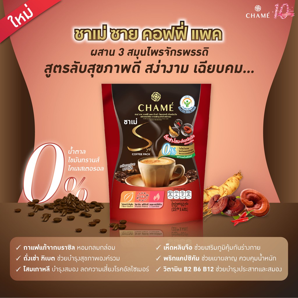 [ถุงแดง] Chame Sye Coffee Pack Cordyceps Ginseng ชาเม่ ซาย คอฟฟี่ แพค ถั่งเช่า โสมเกาหลี [10 ซอง]