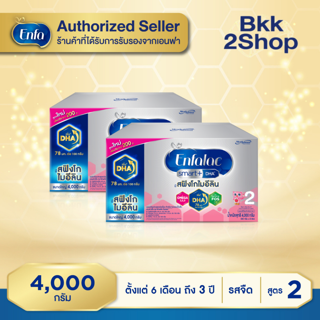 (ยกลัง 2 กล่อง) Enfalac Smart+2 เอนฟาแล็ค สมาร์ทพลัส นมผง สูตร 2 รสจืด ขนาด 4000 กรัม สูตรใหม่ มี DHA