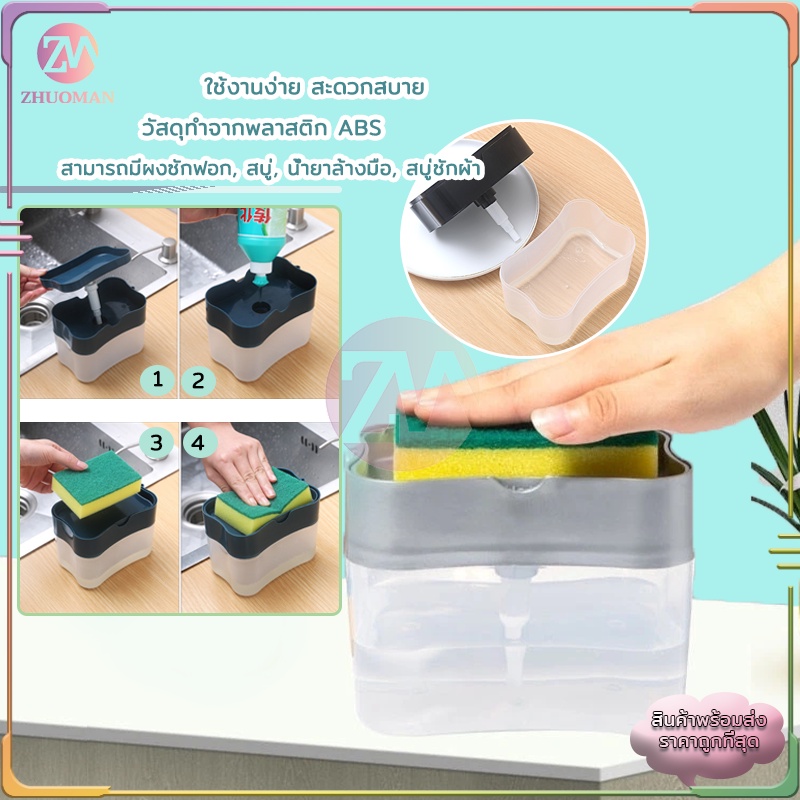 ที่กดน้ำยาล้างจาน ที่กดน้ำยาล้างจาน ที่ใส่น้ำยาล้างจาน 2in1 ที่วางฟองน้ำ กล่องปั้มน้ำยาล้างจาน มีให้เลือก 4 สี
