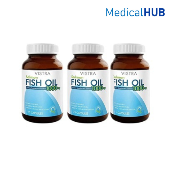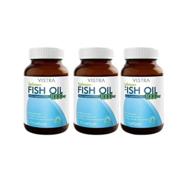 Vistra Salmon Fish Oil 1000 mg วิสทร้า น้ำมันปลาแซลมอน 1000 มก ขนาด 75 เม็ด จำนวน 3 ขวด (3X13069)