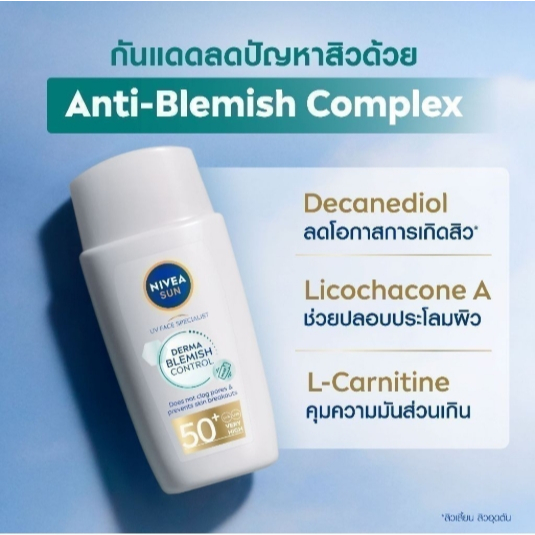 Nivea นีเวีย ซัน เดอร์มา SPF50+ 40 มล. ครีมกันแดด ช่วยคุมมัน ไม่ทิ้งคราบ อ่อนโยนต่อผิว