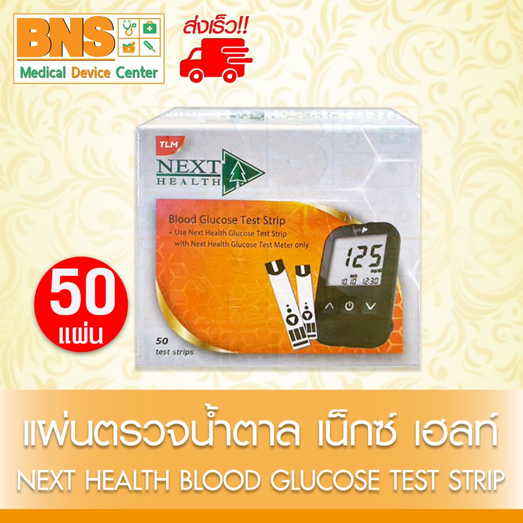 ส่งเร็ว!! ( 1 กล่อง 50 ชิ้น ) Next health blood glucose strip แผ่นตรวจวัดน้ำตาลในเลือด (ถูกที่สุด)