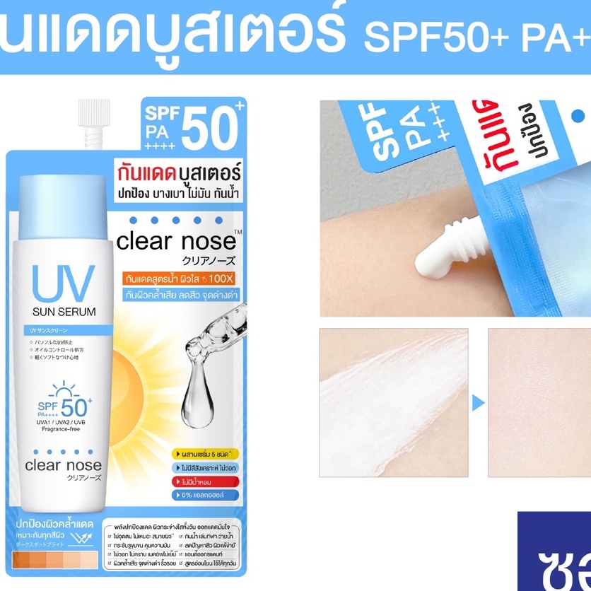 [♥️แท้/1กล่อง6ซอง] Clear Nose UV Sun Serum (SPF50+ PA++) กันแดด กันแดดบูสเตอร์ เพื่อผิวแพ้ง่ายเป็นสิว