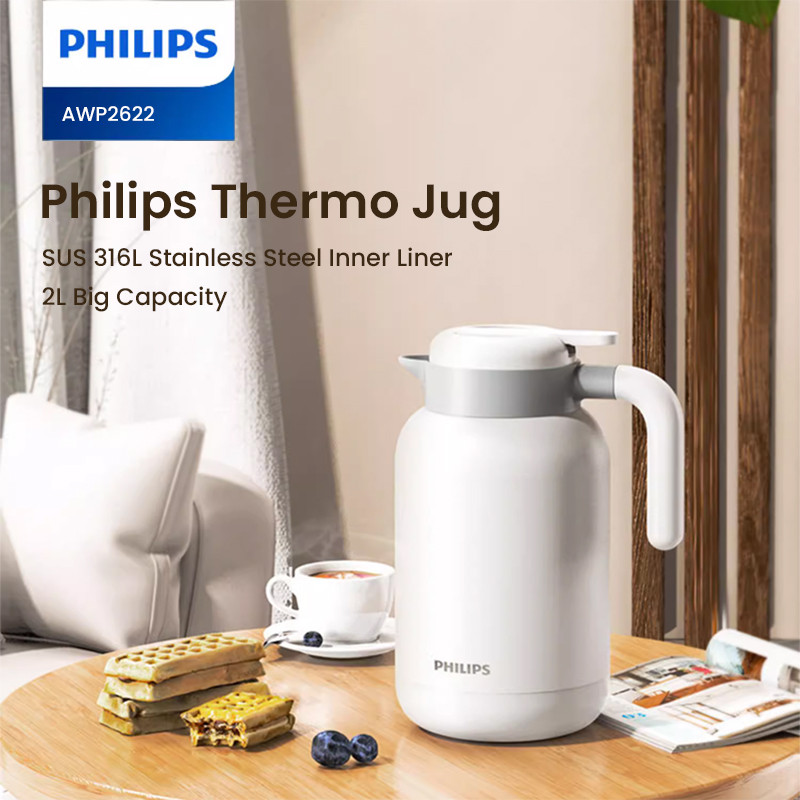 Philips Thermo Jug AWP2622 2L ความจุ 24h หม้อฉนวนสูญญากาศ 316 สแตนเลสซับฉนวนกันความร้อนกาต้มน้ํา