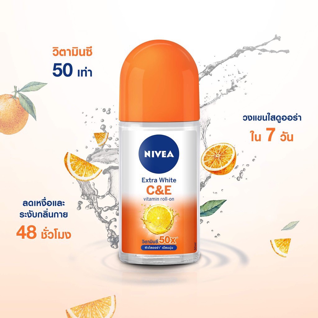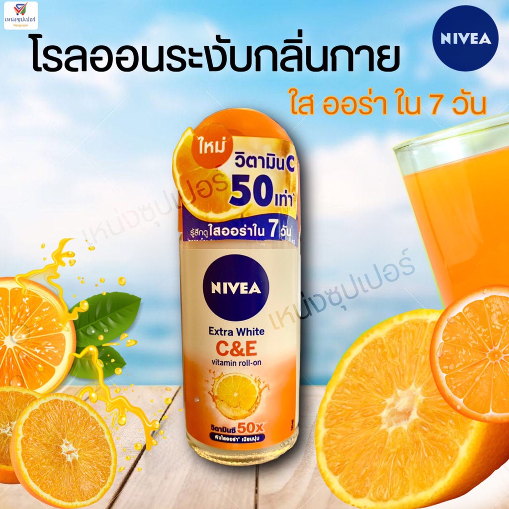 NS นีเวีย โรลออน เอ็กซ์ตร้า ไวท์ ซี แอนด์ อี 50 มล. (NIVEA Extra White C&E Roll On 50ml.)