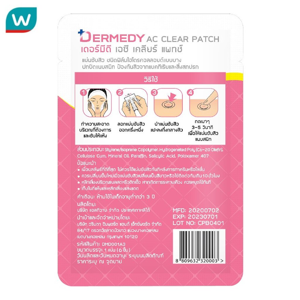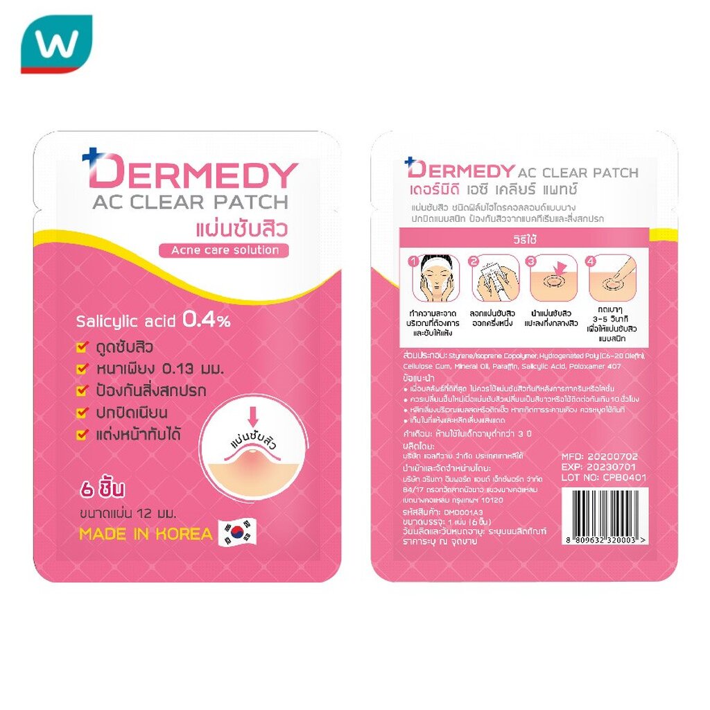 Dermedy เดอร์มีดี เอซี เคลียร์ แพทช์ แผ่นซับสิว 6 ชิ้น
