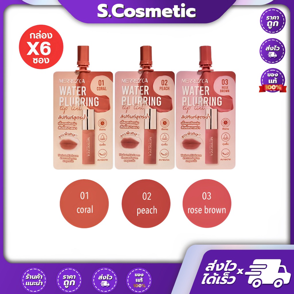 [ยกกล่อง] Merrezca เมอร์เรซกา วอเตอร์ เบลอริ่ง ลิป ทินท์ 2 มล. ลิปทินท์สูตรน้ำ เนื้อมูสเนียนนุ่ม สัมผัสบางเบา