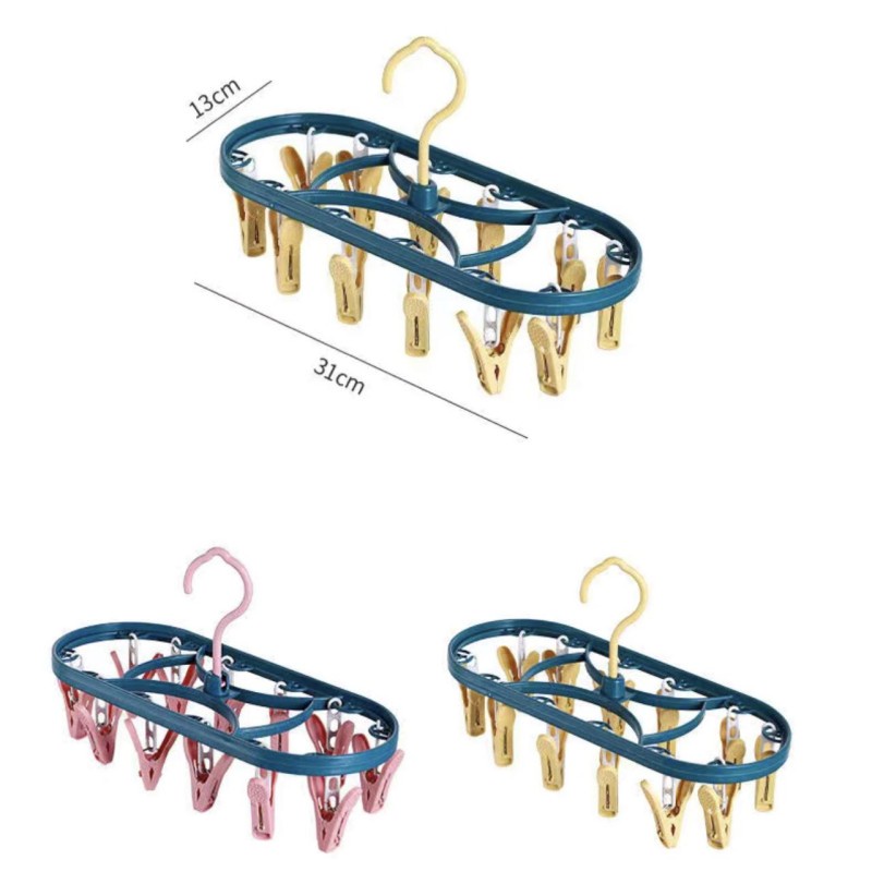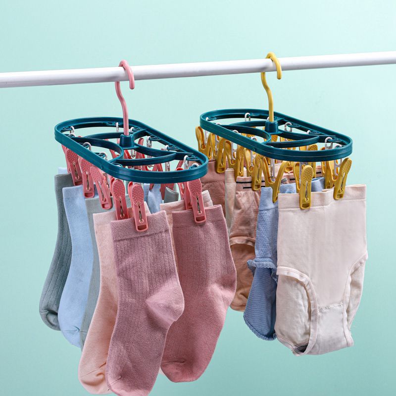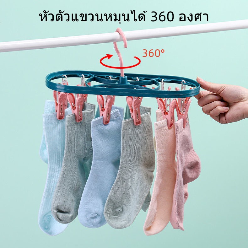 MISSYOU HOMEไม้แขวนเสื้อ ไม้แขวนหนีบผ้า 12 ตัวหนีบ ที่ตากถุงเท้าพร้อมกิ๊บหนีบผ้า หัวตัวแขวนหมุนได้ 360 องศา แข็งแรง