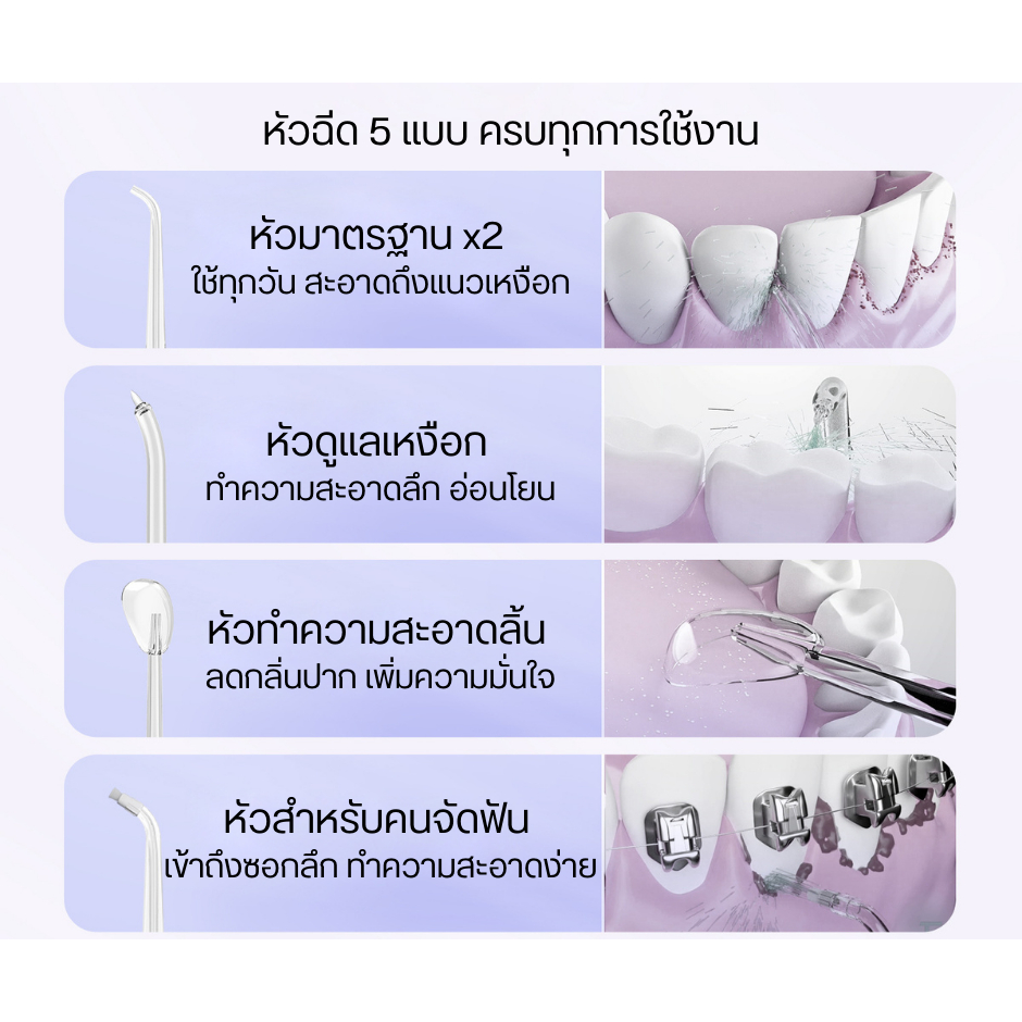 ไหมขัดฟันพลังน้ำ Seago Water Flosser รุ่น SG-8001 ปรับได้ 3 โหมด แถมหัวฉีด 5 แบบ รับประกัน 2 ปี