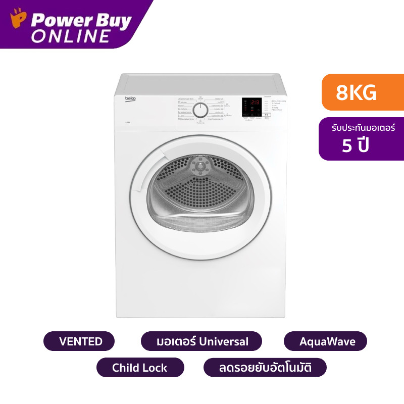 [จัดส่งพร้อมติดตั้ง] BEKO เครื่องอบผ้าฝาหน้า (8 กก.) รุ่น DA8112RX0W + ฐานรอง