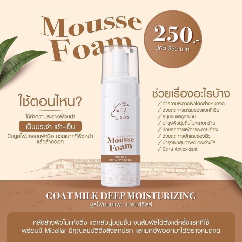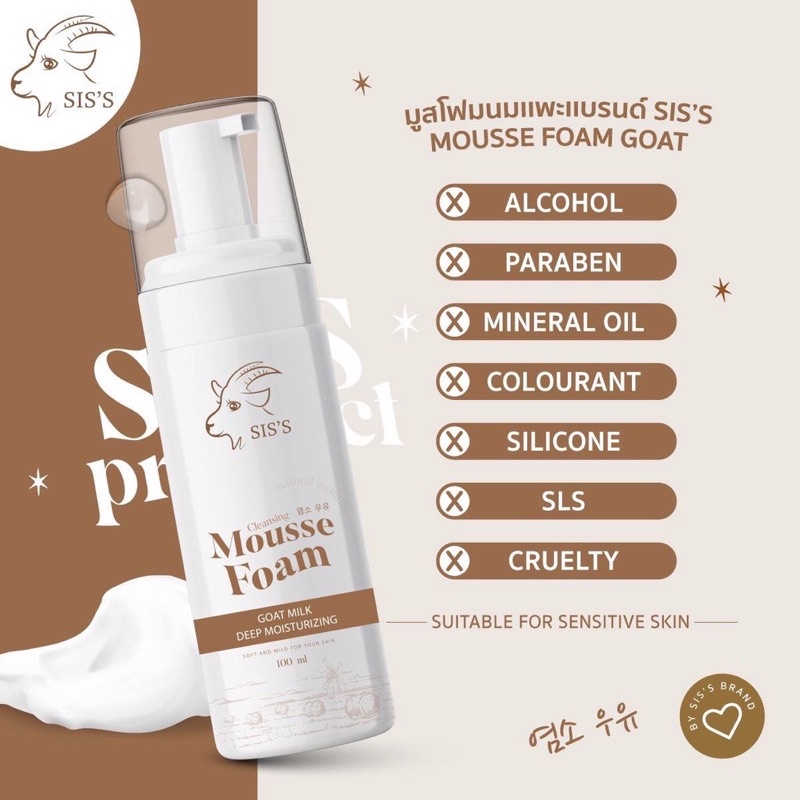 [แพ็คเก็จใหม่]มูสโฟมนมแพะ SIS’S mousse foam goat milk deep moisturizing (100ml)