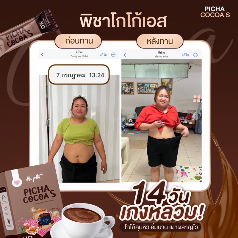 (1แถม1+ส่งฟรี)พิชาโกโก้เอส☕Picha Cocoa S พิชา พรีเมี่ยมโกโก้ คุมหิว อิ่มนาน หุ่นเฟริม ช่วยเผาผลาญ Picha Cocoa S ☕