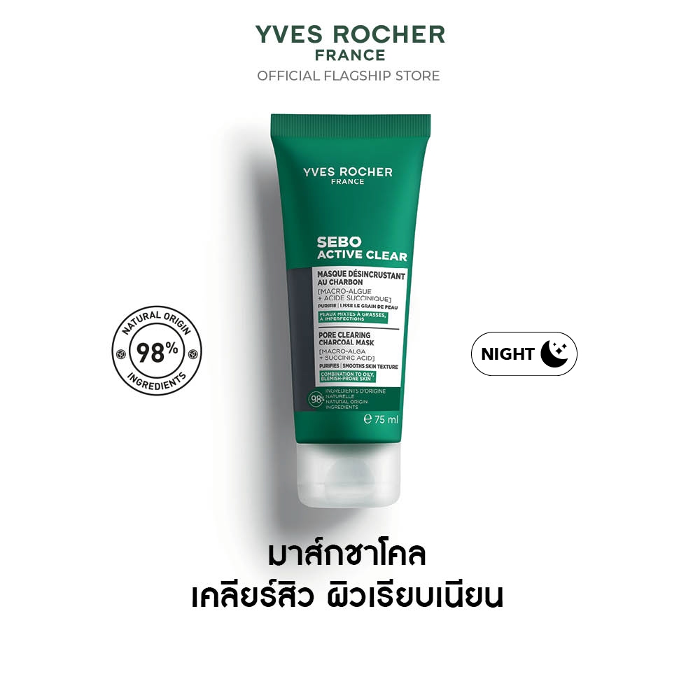 อีฟ โรเช Yves Rocher Sebo Active Clear Pore Clearing Charcoal Mask 75ml มาส์กชาโคล - เคลียร์สิว สิวผด สิวอุดตัน