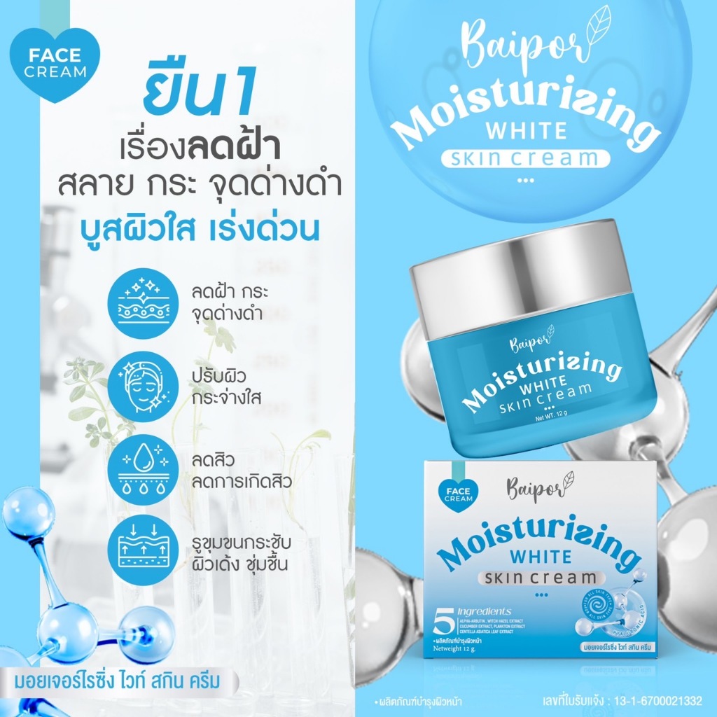 [ 1 แถม 1 ] ครีมใบปอ มอยเจอร์ไรซิ่ง ไวท์ สกิน ครีม BAIPOR MELASMA PREMIUM CREAM