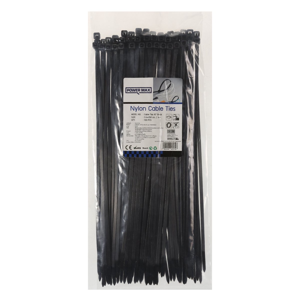 POWER MAX เคเบิ้ลไทร์ 10 นิ้ว x 3.6 มม. สีดำ (แพ็ค 100 ชิ้น) |ZWG|