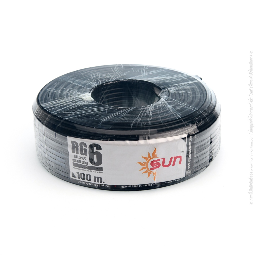 สาย RG-6 SUN ชิลด์ 95% (100 ม.) ขาว | ดำ