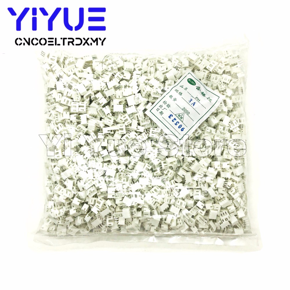 2000pcs PH2.0 2p/3p/4pin 2.0mm Pitch Pin Header JST Connector Wire Connectors Adaptor PH 2.0mm Spacing Connector