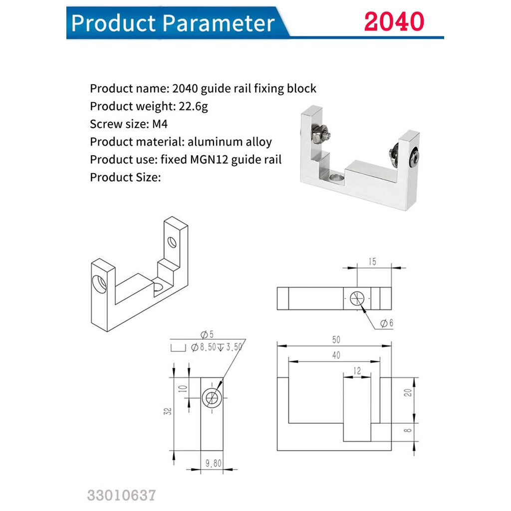 2020 2040 Aluminum Alloy Profile Fixing Block 3D Printer Part for MGN12 Linear Guide Rail Fixed Block 3D Printer Part