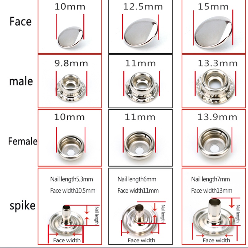 25 sets/100PCS bag 10/12.5/15/17/20mm hand pressed metal snap button rivet button clothes pants leather sewing button