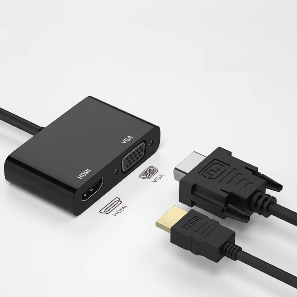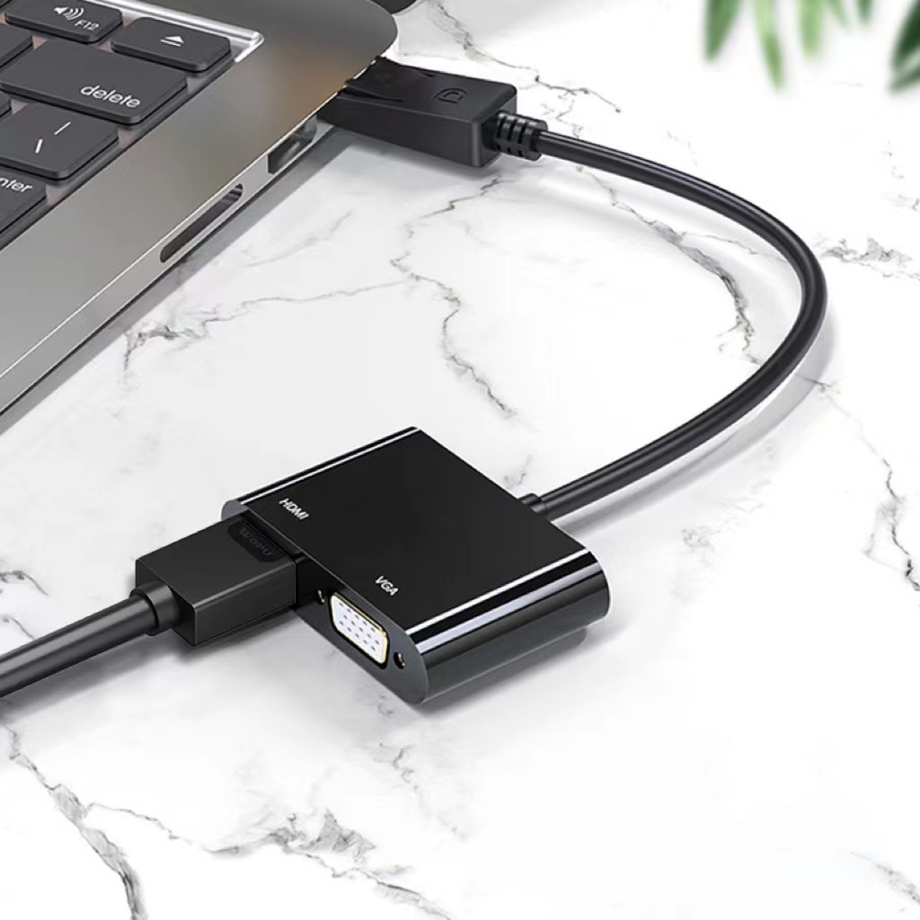 2IN1 HDMI+VGA DisplayPort To HDMI+VGA Aluminum 4Kx2K Adapter, DP Display Port To HDMI/VGA Converter Male To Female