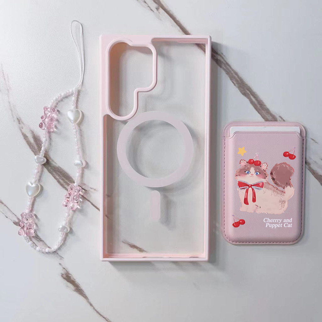 3 ชิ้น Cherry Cat กระเป๋าสตางค์น่ารักการ์ตูนสําหรับ Samsung s22 s22plus ultra กรณี Girly S23 S23Plus s23fe s24 s24plus s24ultra กระเป๋าสตางค์ปกหลัง