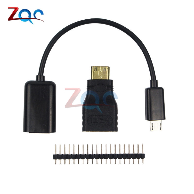 3 in 1 Raspberry Pi Zero W Kit Mini HDMI to HDMI Adapter + Micro USB to USB Female Cable + Male GPIO Header