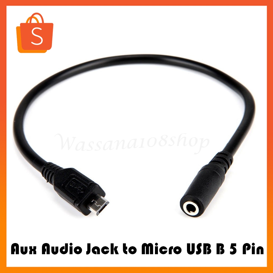 3.5mm Female 3 Pole Aux Audio Jack to Micro USB B 5 Pin Male Adapter Cable 1FT