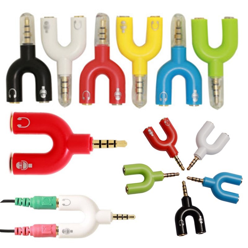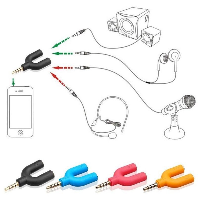 3.5mm Jack Split Microphone Mic & Audio Earphone Y Splitter Converter Adaptor
