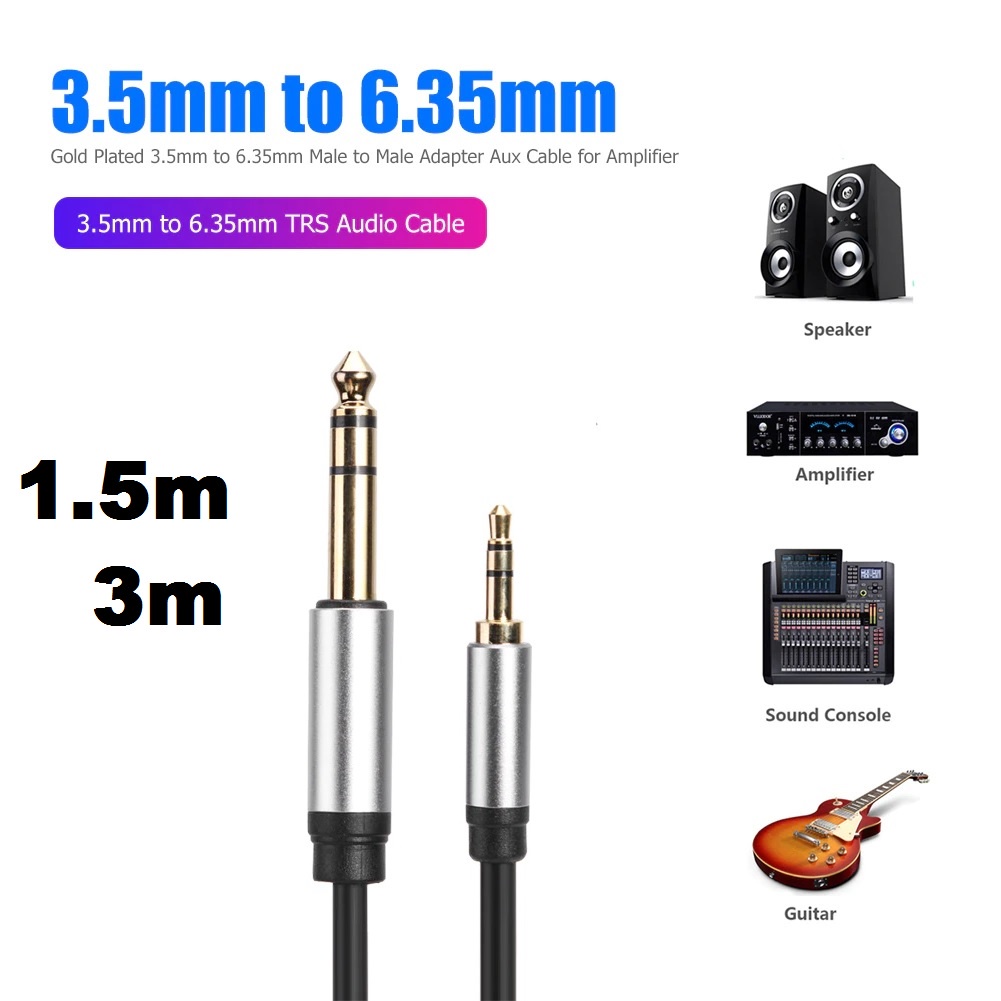 3.5mm to 6.35mm Jack Adapter Aux Cable for Mixer Amplifier Gold Plated 1.5m 3m Aux Cabo Male to Male Line.