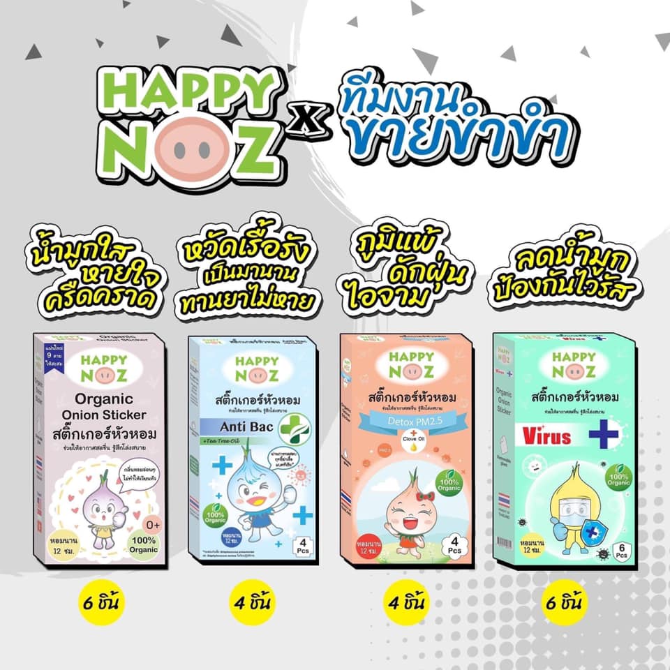 HAPPY NOZ สติ๊กเกอร์หัวหอม 1 กล่อง สีม่วง สีฟ้า สีส้ม สีเขียว