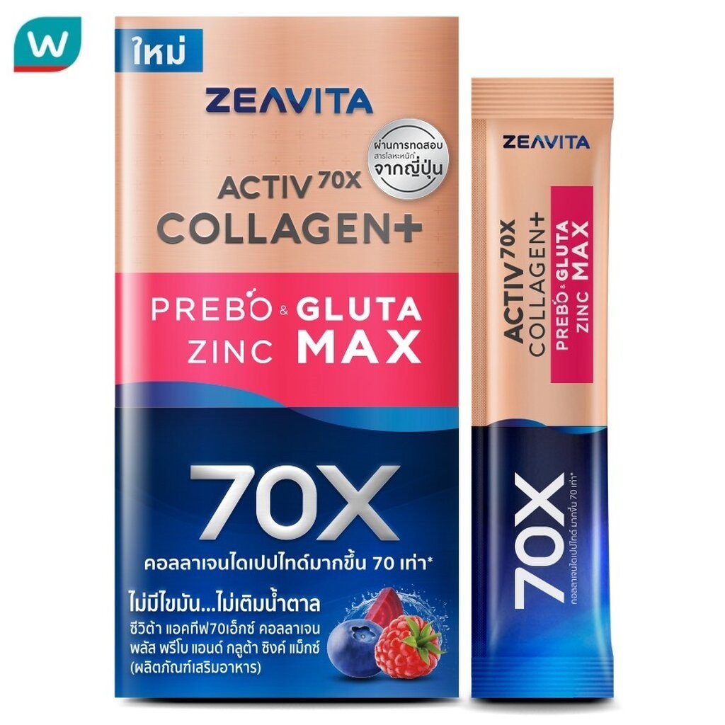 Zeavita ซีวิต้า แอคทีฟ70X คอลลาเจน พลัส พรีโบ แอนด์ กลูต้า ซิงค์ แม็กซ์ 8 ซอง