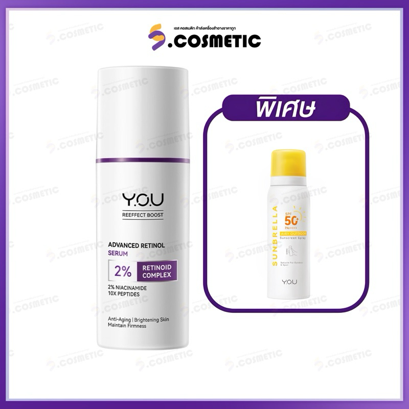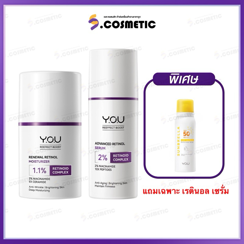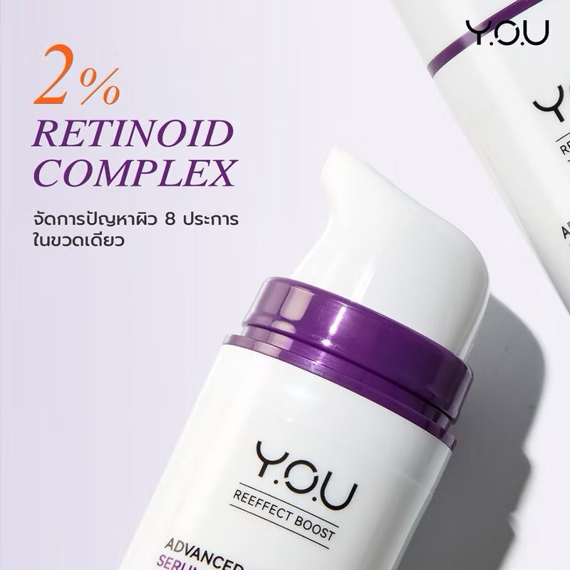 YOU วาย.โอ.ยู รีเอฟเฟกต์บูสท์ แอดวานซ์เรตินอล เซรั่ม 30 ก. เรตินอลมอยซ์เจอไรเซอร์ 50 ก. (แถมสเปรย์กันแดด 50 มล. 229 บาท)