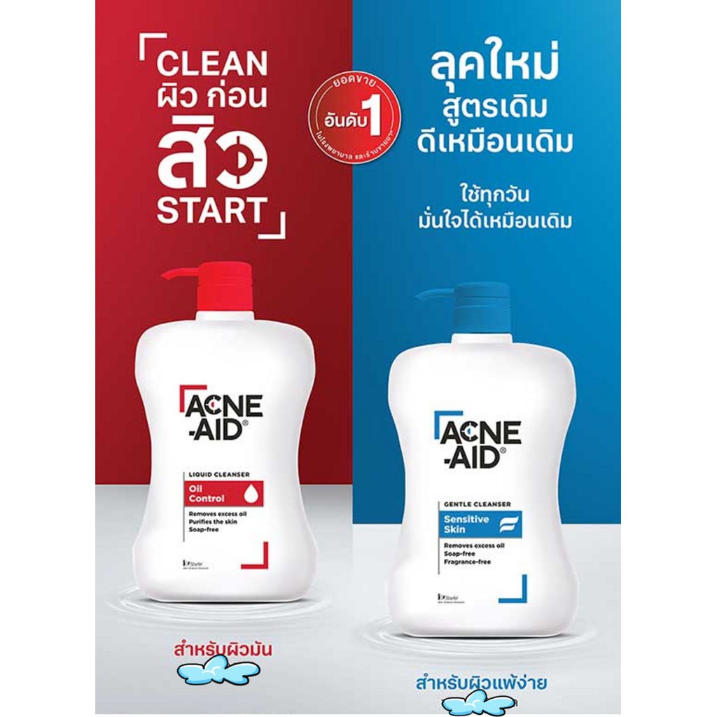 Acne-Aid Liquid Cleanser แอคเน่-เอด ลิควิด คลีนเซอร์ ขนาด 900 มล. [1 ขวด สีแดง] AA 5305 ทำความสะอาดผิวหน้า สำหรับผิวมัน