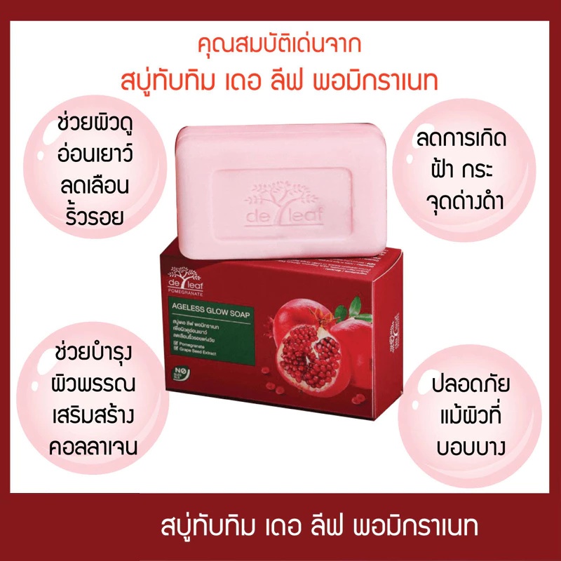 (แบบโหล 12 ก้อน) De Leaf Thanaka (2สูตร) สบู่เดอ ลีฟ ทานาคา /สบู่ทับทิม (ปริมาณ 100 กรัม)