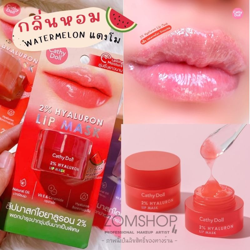 🍉 กระปุก【กลิ่นแตงโม】🌈 ลิปมาสก์ ฟื้นฟูปากลอกเป็นขุย ✨ CATHY DOLL 2% HYALURON LIP MASK 4.5G WATERMELON