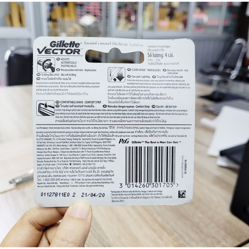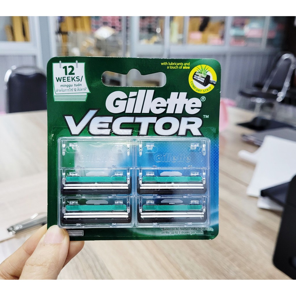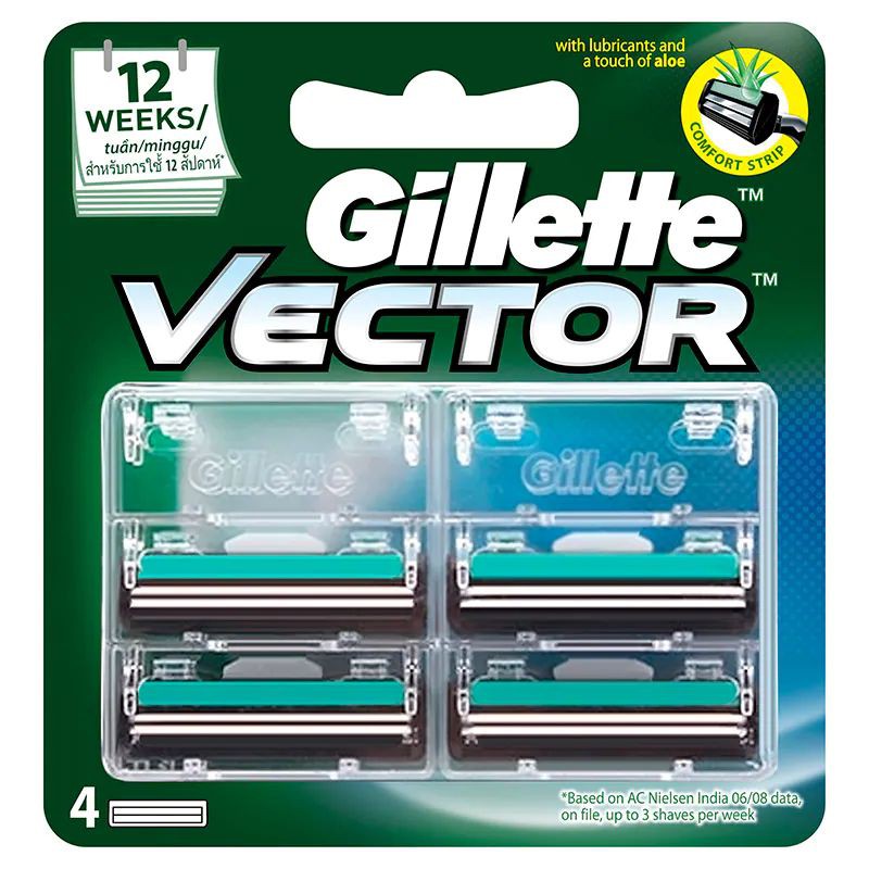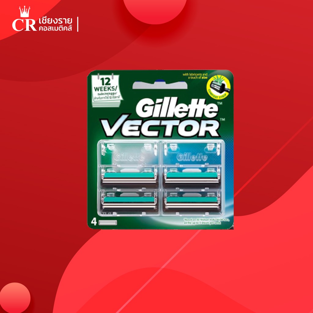 Gillette Vector ยิลเลตต์ ใบมีดโกน เวคเตอร์ 4 ชิ้น ใบมีดคู่ สำหรับโกนหนวด