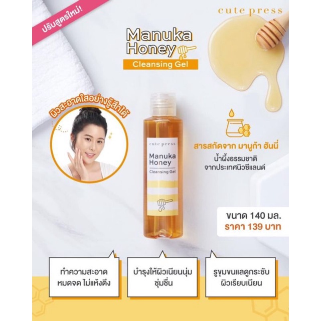 เจลล้างหน้า มานูก้า ฮันนี่ เคล็นซิ่ง เจล คิวท์เพรส CUTE PRESS MANUKA HONEY CLEANSING GEL 160มล.