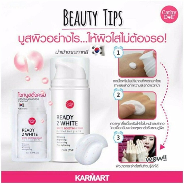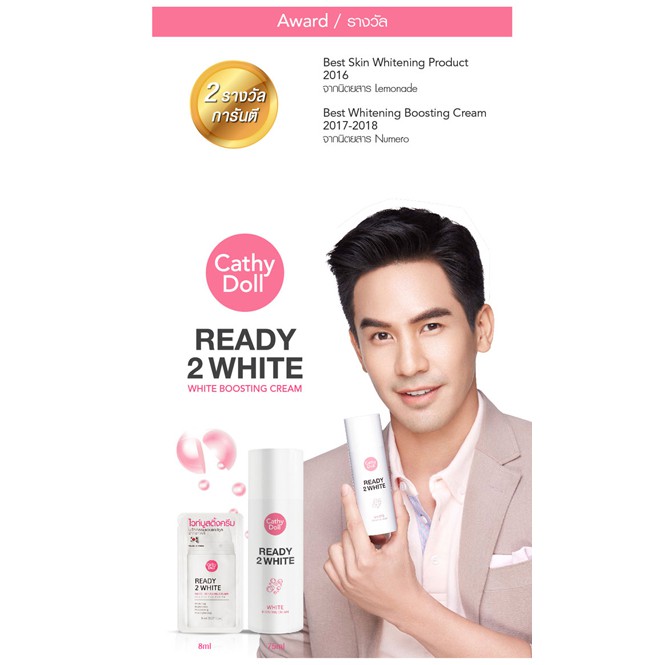 Cathy Doll Ready 2 White Boosting Cream 75 ml. เรดี้ทูไวท์ ไวท์บูสติ้งครีม บูสพลังพร้อมล็อคผิวกระจ่างใสเต็มพิกัด
