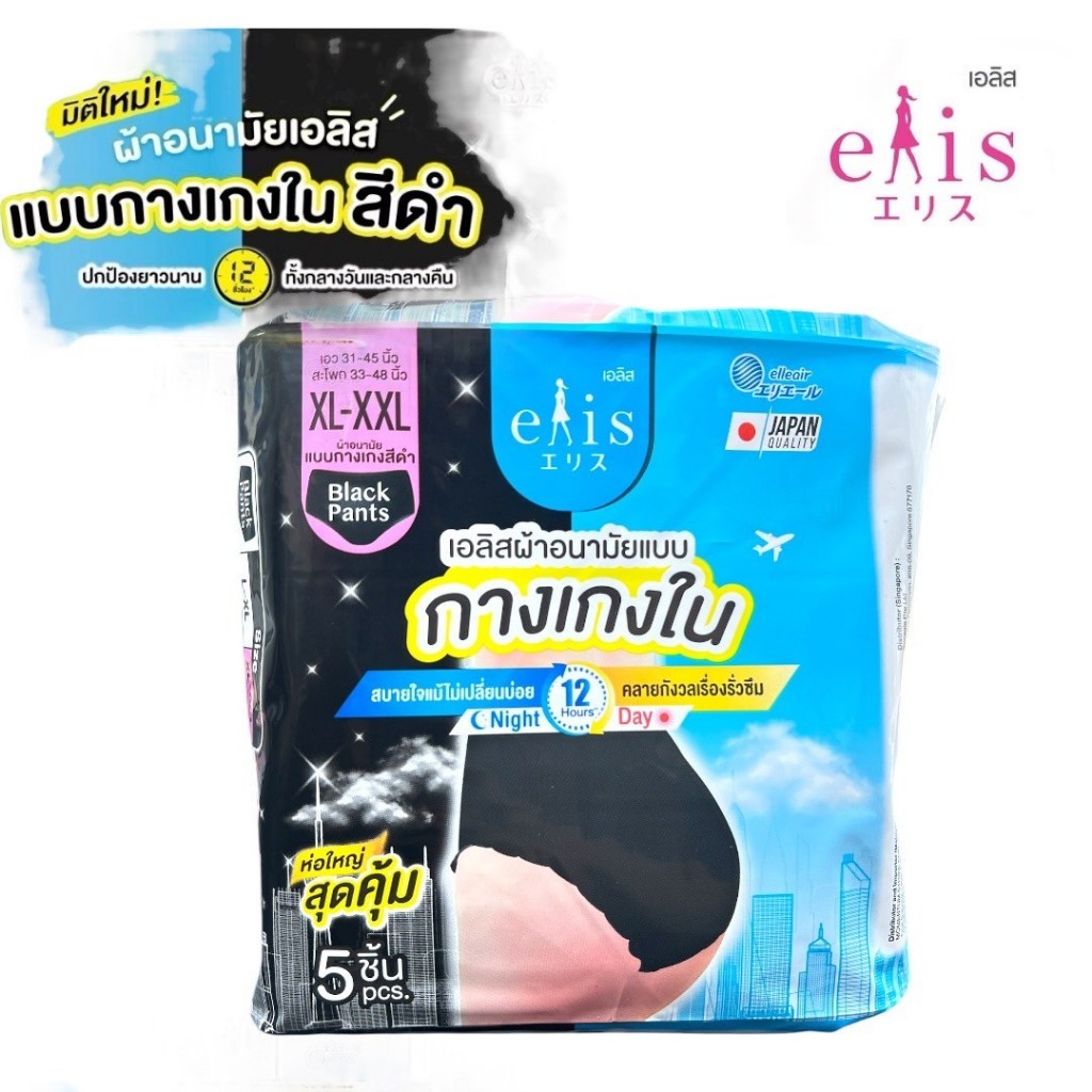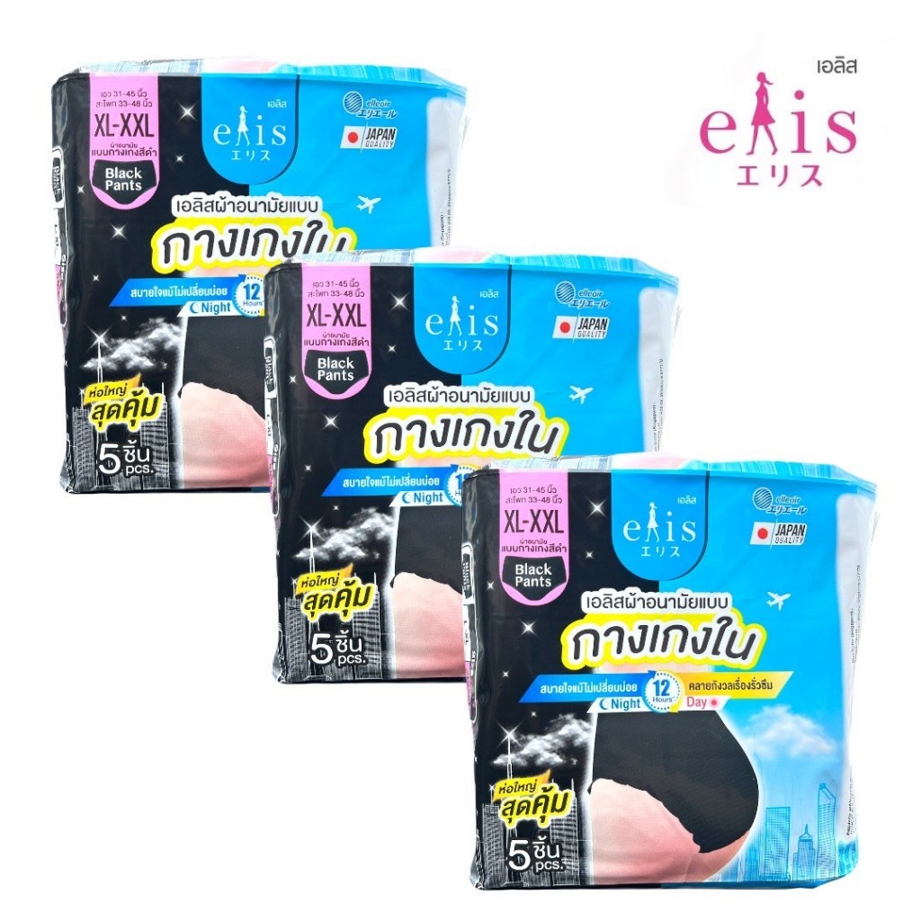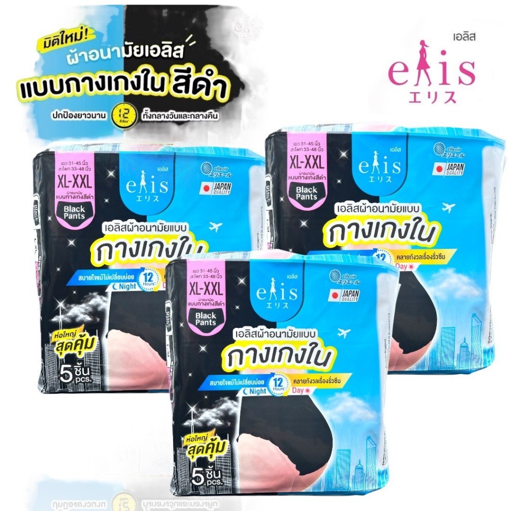 Elis เอลิส ผ้าอนามัยแบบกางเกง สีดำ XL-XXL 1ห่อ แพ็ค 5 ชิ้น