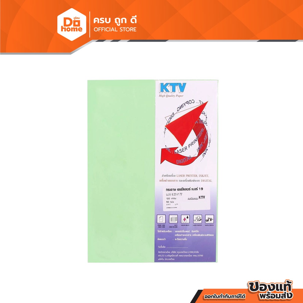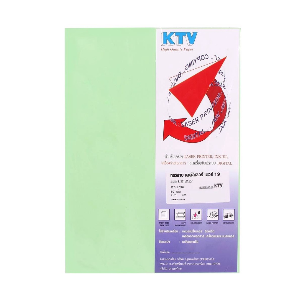 KTV กระดาษทำปก A4 120 แกรม 50 แผ่น เบอร์ 19 สีเขียวอ่อน |ZWG|