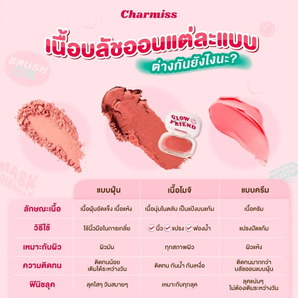 Charmiss ชาร์มิส โกลว์เฟรนด์ เนอเชอรัล บลัชออน 4 กรัม บลัชออนเนื้อโมจิ ปัดแก้ม เม็ดสีชัด