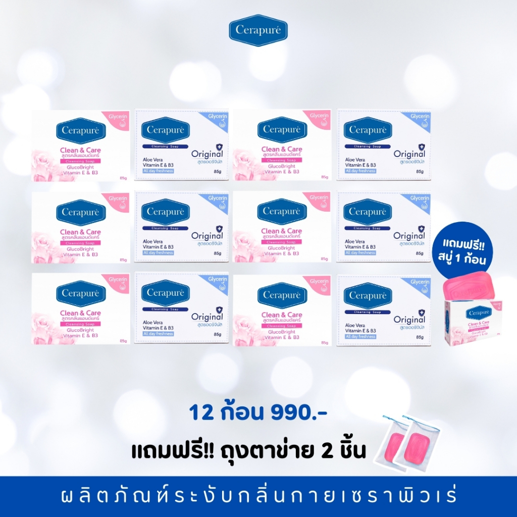 Cerapure Soap FS สบู่ก้อนดับกลิ่นกายเซราพิวเร่ กลิ่น Original สีฟ้า