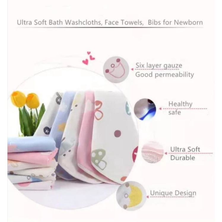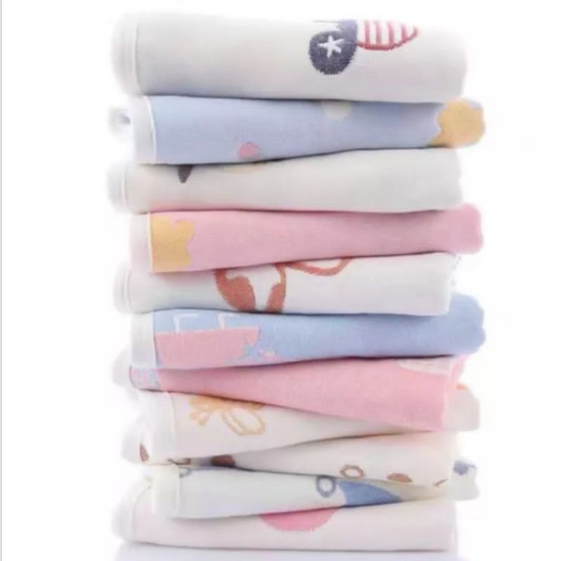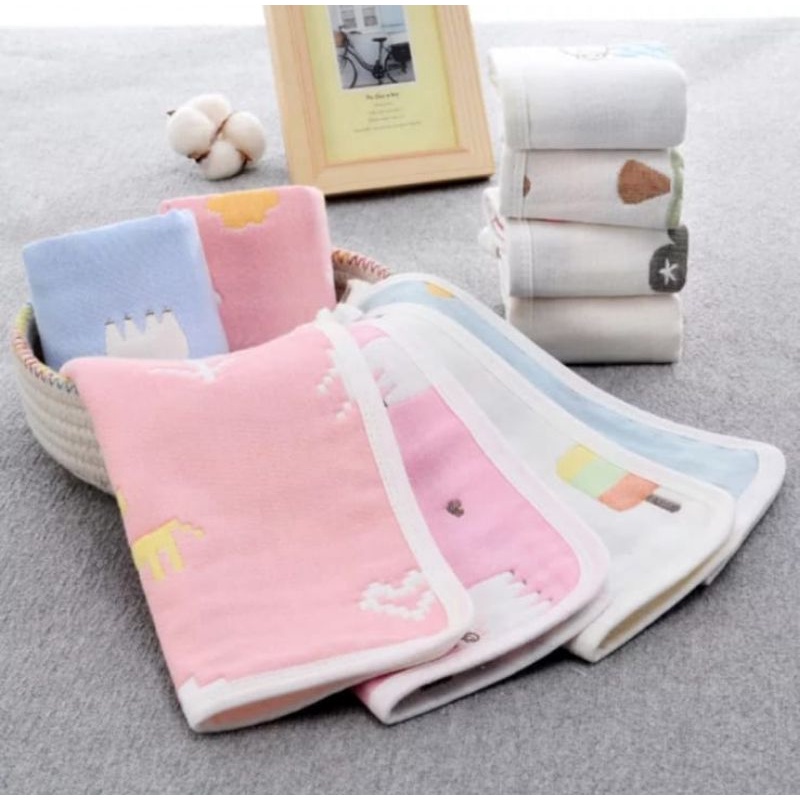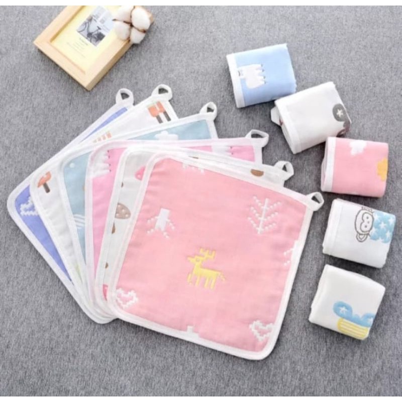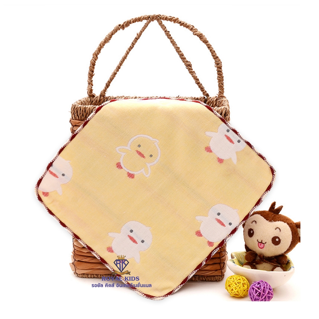 C0023 ผ้าเช็ดหน้าอนุบาล ผ้าสาลูทอ6ชั้น หน้าเด็ก ขนาด 25x25cm. อเนกประสงค์