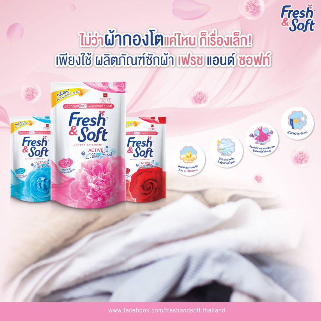 Fresh & Soft ผลิตภัณฑ์ซักผ้า เฟรช แอนด์ ซอฟท์ กลิ่น Lovely Kiss (สีชมพู) ชนิดเติม 400 ml แพ็ค 3 ถุง