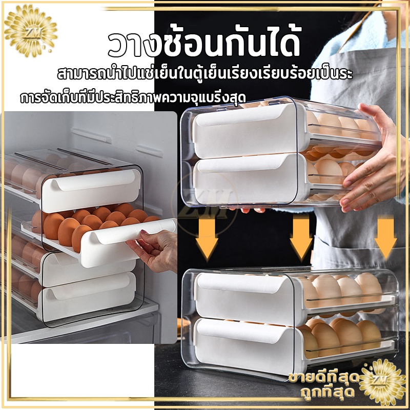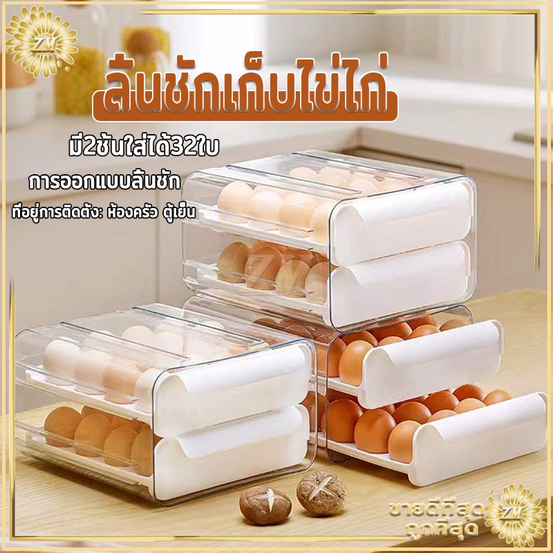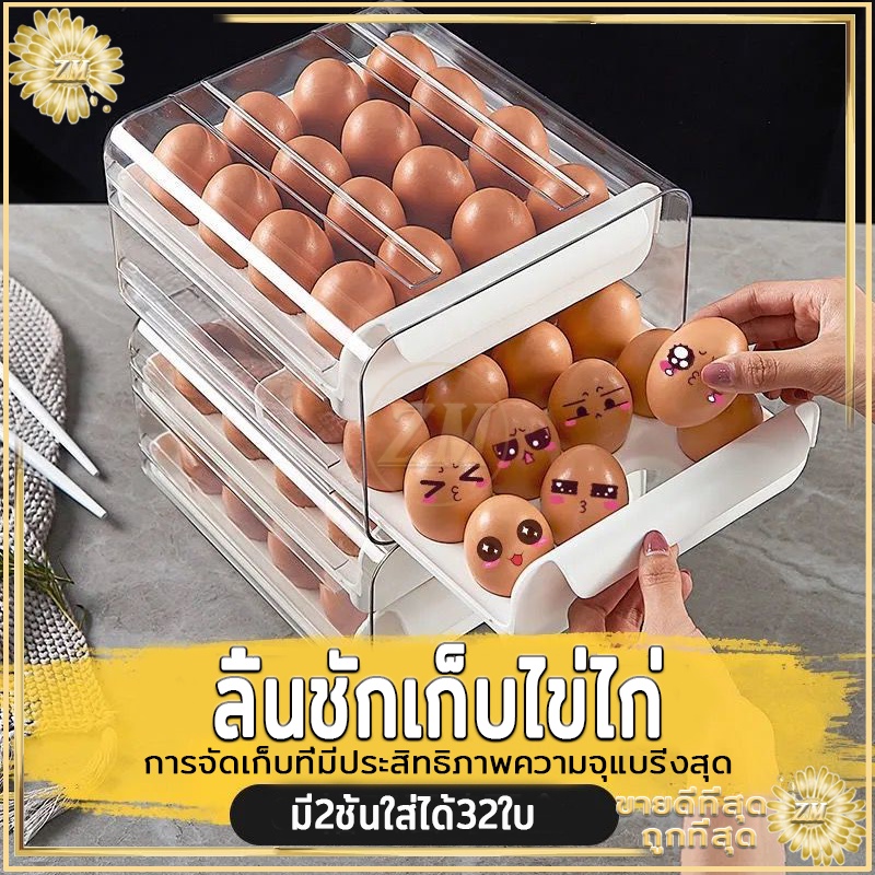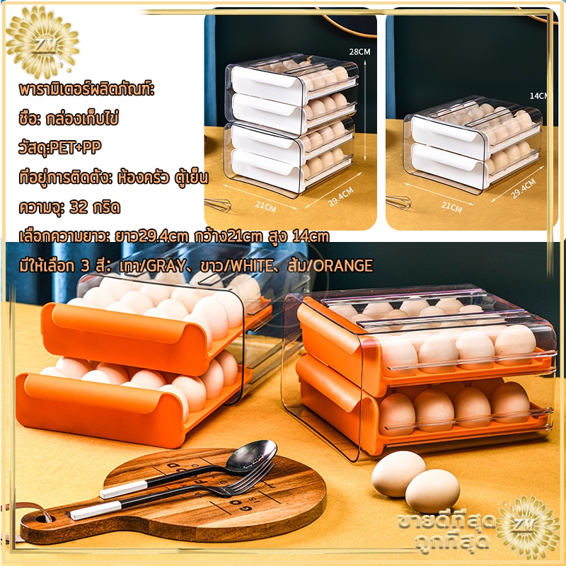 กล่องเก็บไข่ กล่องใส่ไข่ ลิ้นชักตู้เย็น มี2ชั้นเพิ่ม32ได้ ไข่ ป้องกันการแตกหักและเสีย จัดเก็บง่าย ประหยัดพื้นที