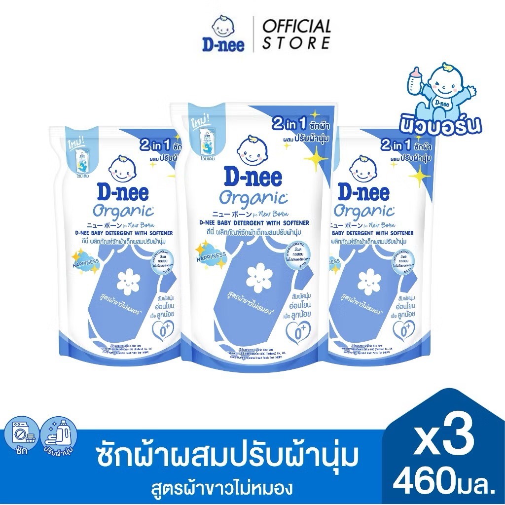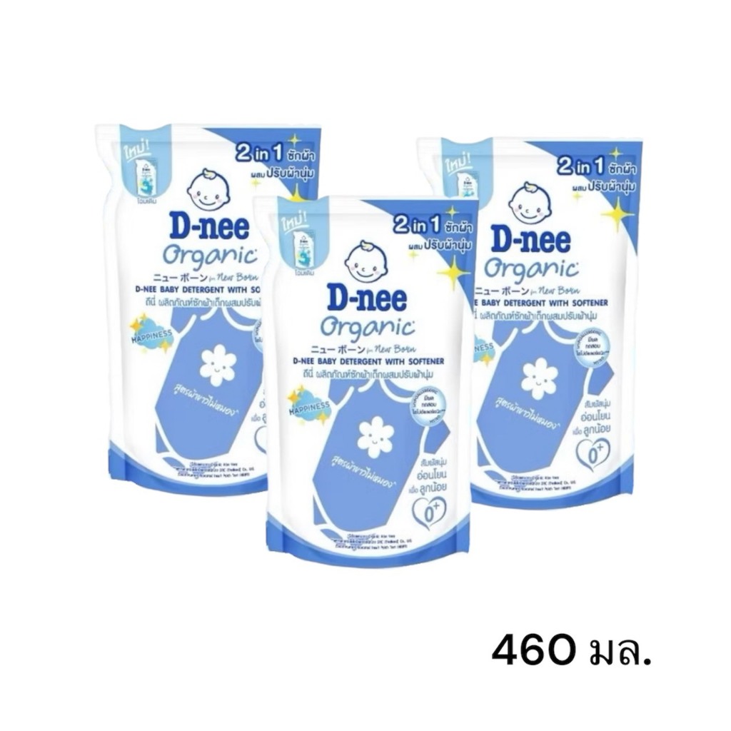 D-nee Newborn น้ำยาซักผ้าผสมปรัผ้านุ่มเด็กชนิดเติม ขนาด 460มล. (แพ็ค 3)