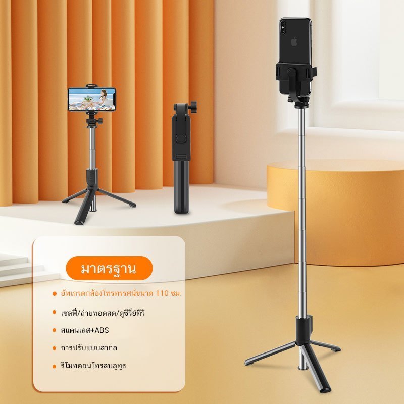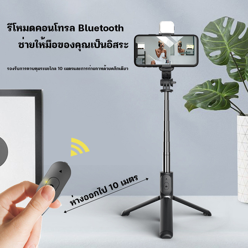 WED Selfie Stick พร้อมไฟไลฟ์สด – กันสั่นได้ดี พับเก็บได้ รีโมทบลูทูธ 10M หมุนได้ 360° สำหรับถ่ายเซลฟี่และไลฟ์สด